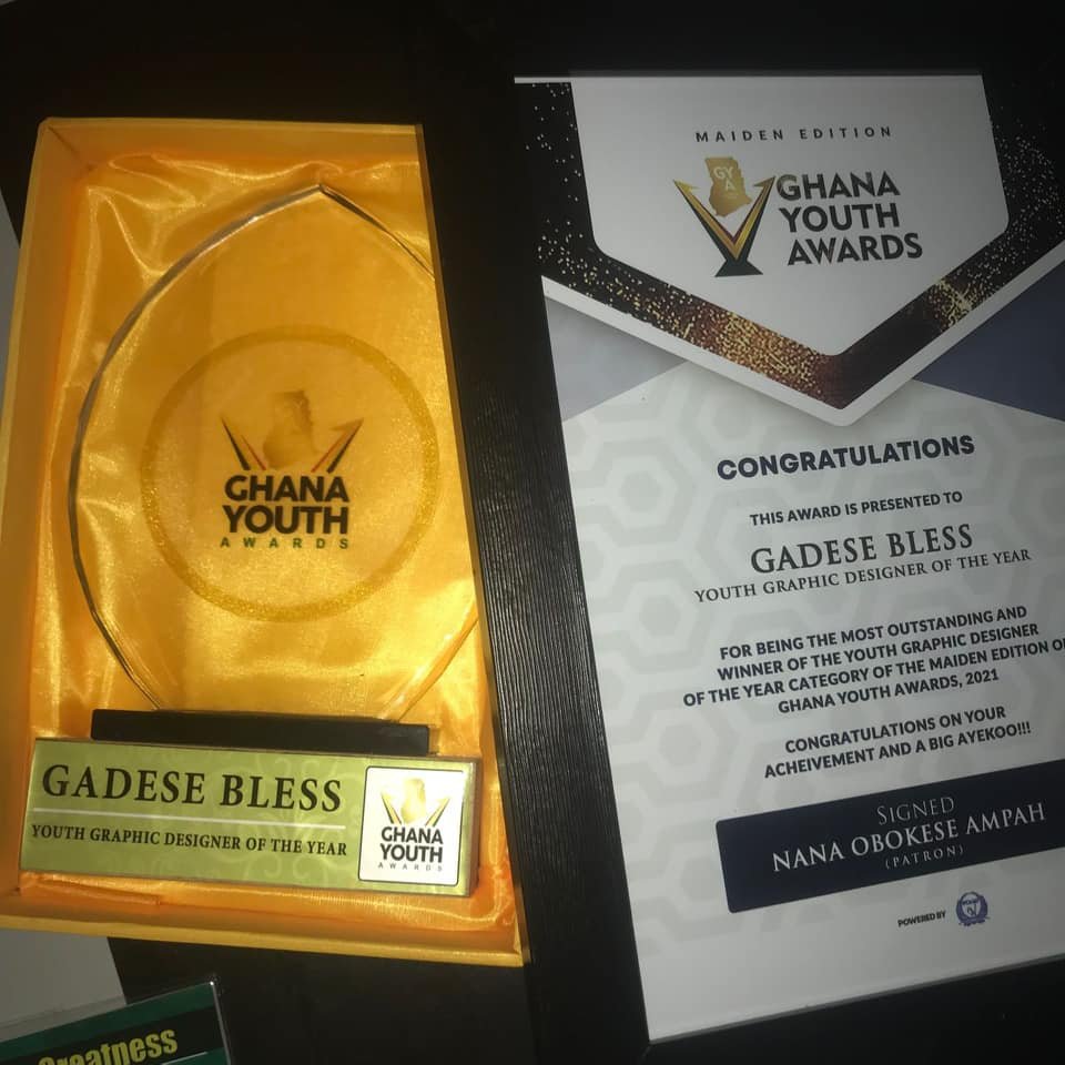Today we celebrate BLESS GADESE, a Gold Award Participant who recently won “Youth Graphic Designer of the year 2021” at the Ghana Youth Awards 2021 event for his outstanding works as a young graphic designer.